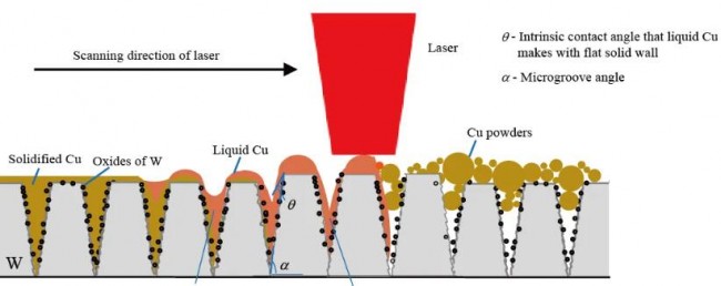 ▲圖3:鎢表面激光織構(gòu)化對于銅增材過程調(diào)控