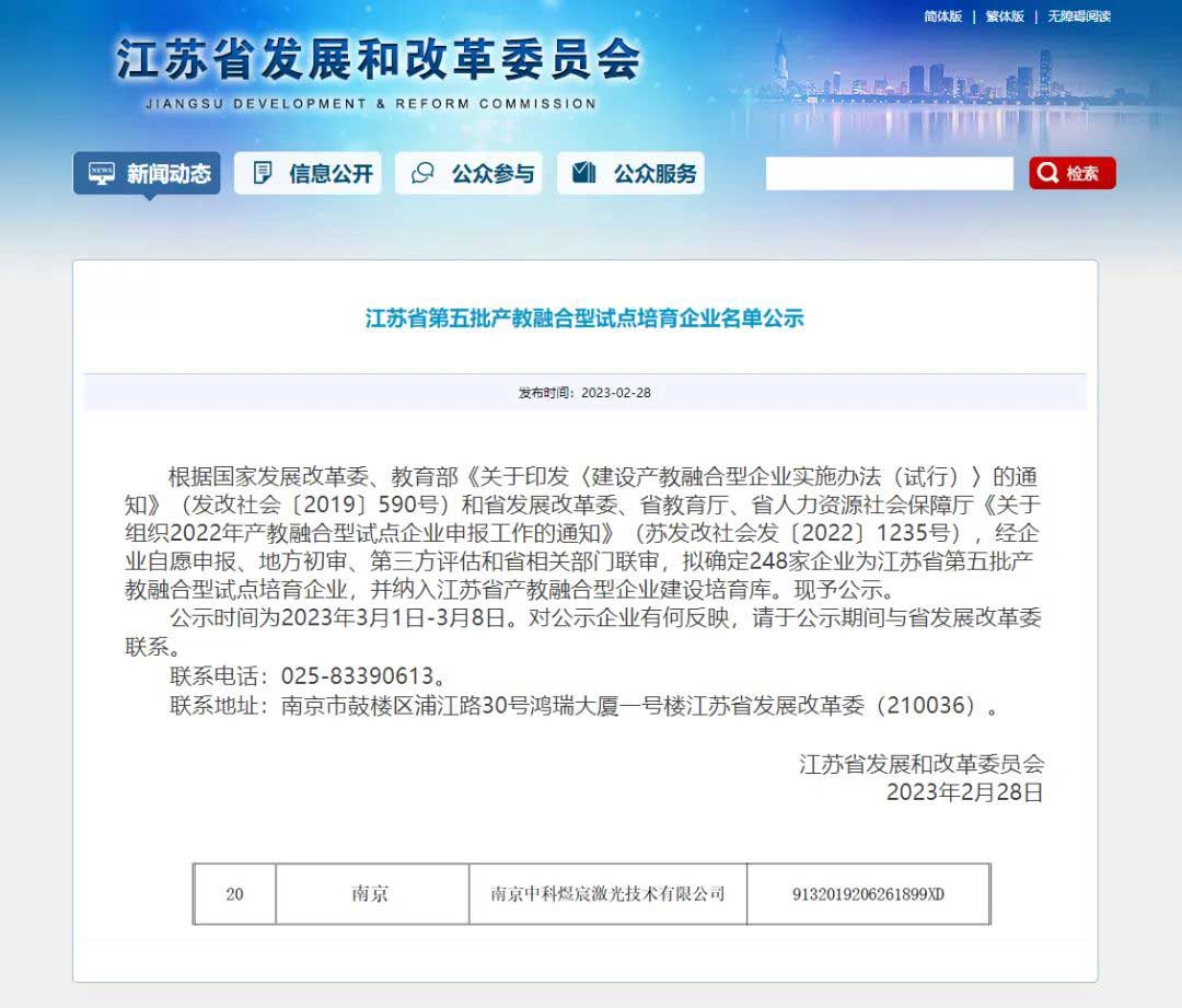 2月28日,江蘇省發(fā)展和改革委員會(huì)發(fā)布通知,公布江蘇省第五批產(chǎn)教融合型試點(diǎn)培育企業(yè)名單,中科煜宸成功入選,并被納入江蘇省產(chǎn)教融合型企業(yè)建設(shè)培育庫(kù)。